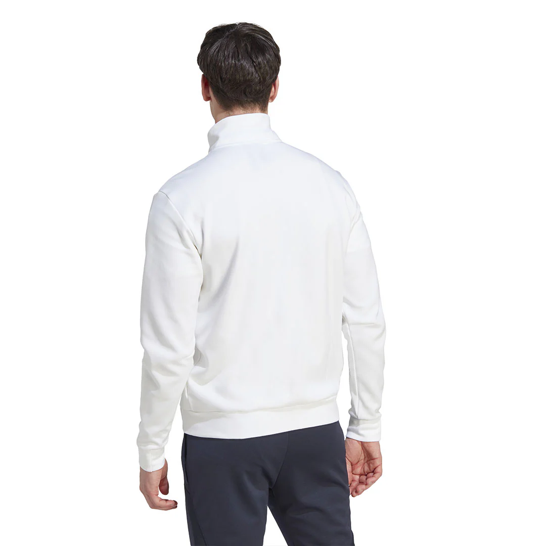 When the pros suit up and head onto the pitch the Real Madrid Anthem Jacket is a sign that world-class talent has entered the arena. With its sleek design and pure club colors, the stylish jacket lets you take the match-day winning mentality wherever you go.Simple and elegant, a classic all-white base is used as the foundation for a full-color crest at the chest, alongside a black adidas logo on the opposite side. One zip pocket and one slip-in pocket ensures space to keep your valuables secure, while the stand-up collar and full-zip is a stylish buffer against the elements. The result? A look that says Real Madrid through and through.