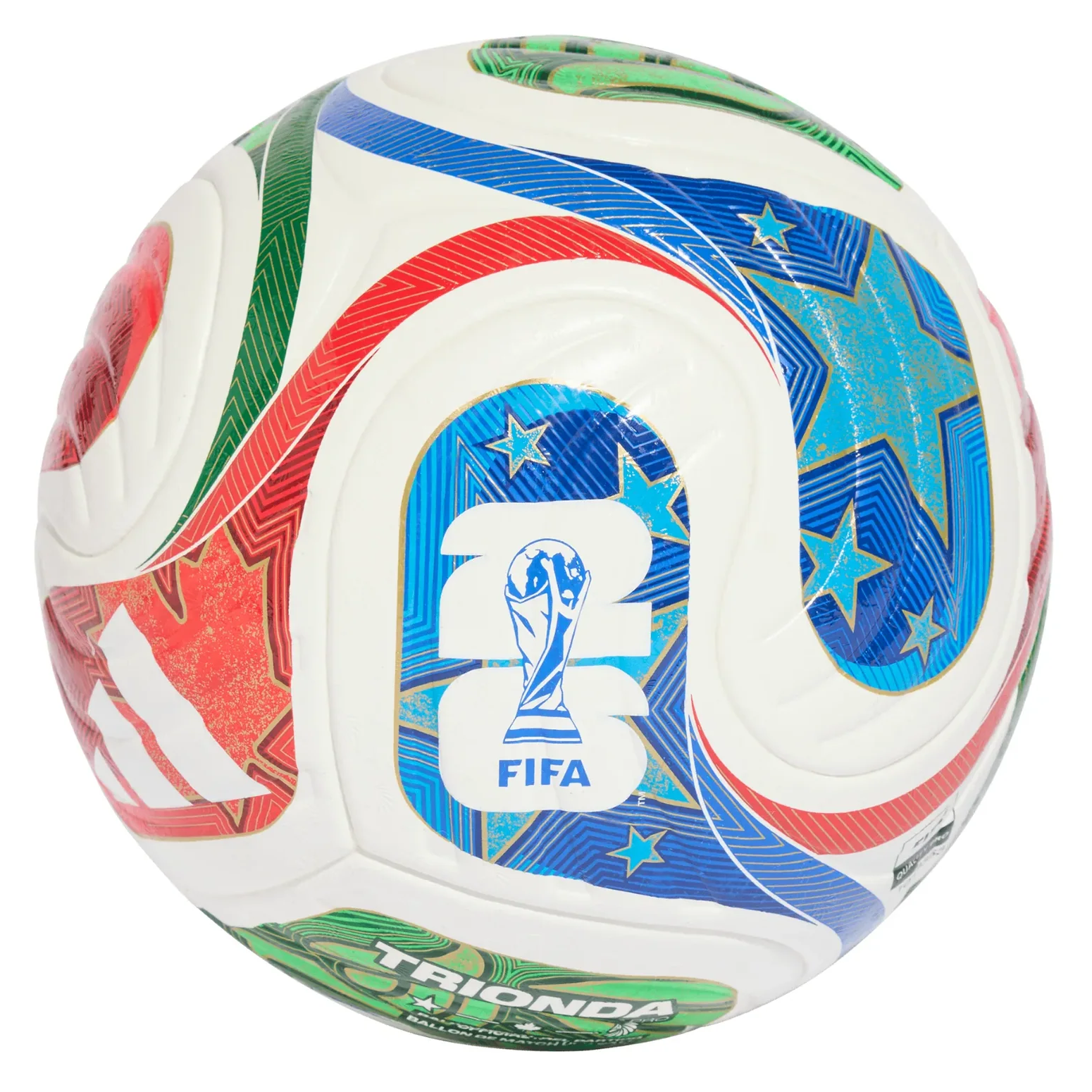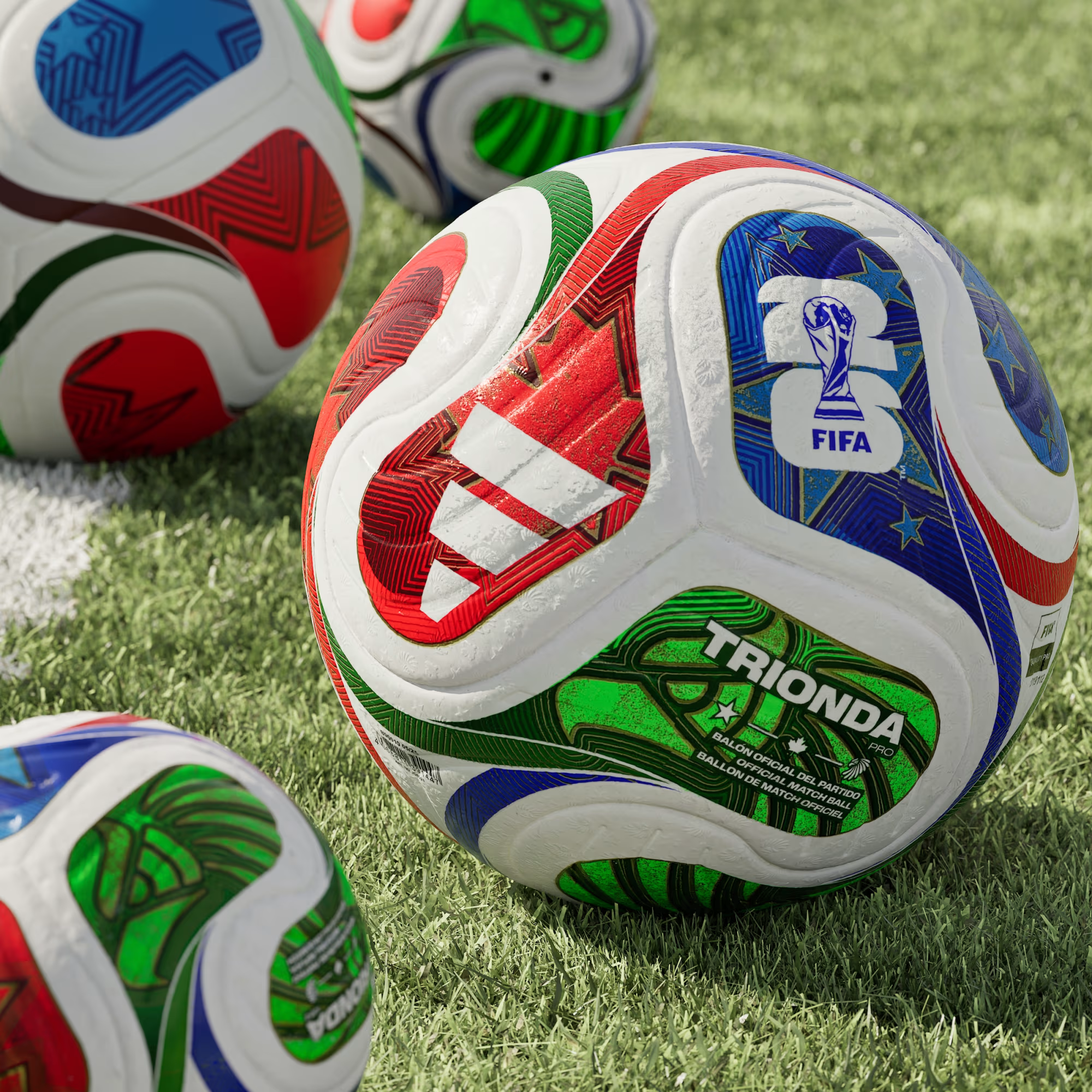 A spectacular sight first seen at sporting venues across the Americas, the iconic "la ola" wave inspires the flowing, four-panel design of this adidas Trionda Pro ball. The official football of the FIFA World Cup 26™, it has a seamless surface with an eye-catching texture and strategically placed debossing for optimal precision and in-flight stability. Vibrant colors and bold national symbols represent the tournament's three host countries.