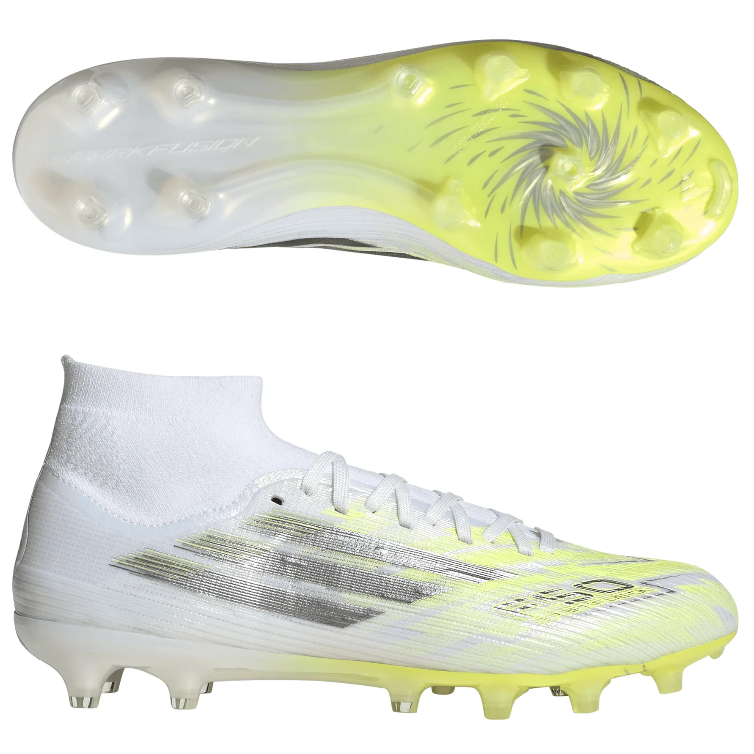 The F50 Sparkfusion Pro Mid Cut Firm Ground / Artificial Ground Football Boots are crafted to change the course of your matches. The engineered Primeknit collar offers a mid-cut design that provides a firm, supportive and comfortable fit.
